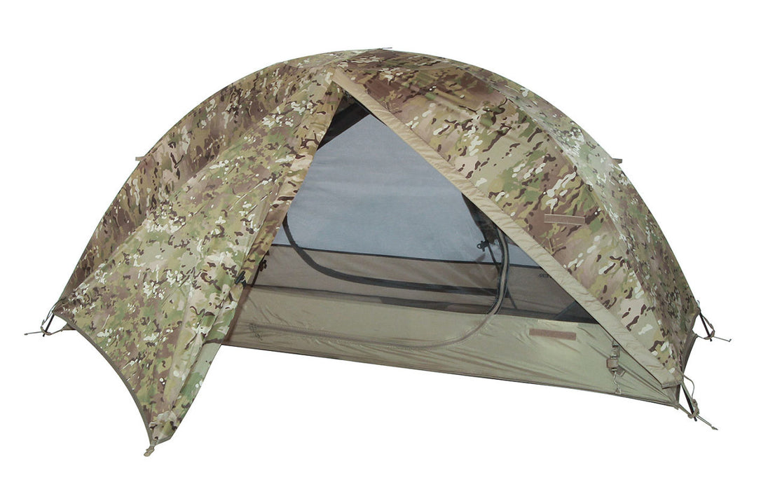 This tent includes: 70D Inner Tent, 30D MultiCam® Rainfly Cover, All-in-One Aluminum Pressfit Pole Set, 70D Waterproof Groundsheet, 6 Ground Stakes, Stuff Sack and an Accessory Kit (fabric repair patches, tent pole repair splint, 4 tent guy-outs w/molded tensioners)